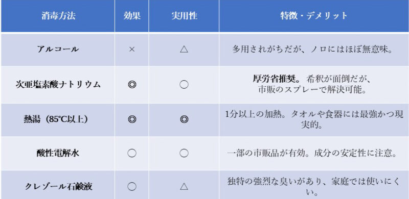 厚労省のガイドラインでは、ノロウイルス対策として「次亜塩素酸ナトリウム」による消毒が推奨されています。