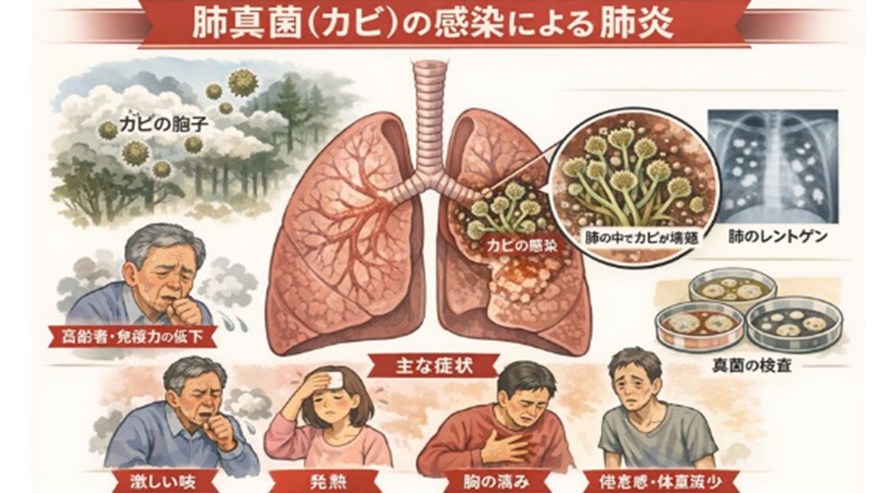肺真菌症は、普段は害のないカビが、免疫力が低下したときに肺炎を起こす病気です。